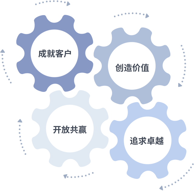 成就客户是一切决策的出发点,创造价值是衡量所有工作的标准,追求卓越是银河集团186net做事做人的态度,开放共赢是银河集团186net的格局也是最终的结果。价值观的齿轮环环相扣,推动着组织里的每个人不断向前。